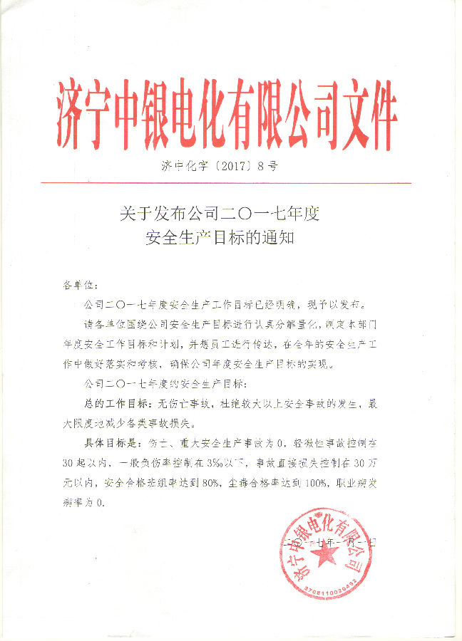 關(guān)于印發(fā)公司2017年度安全生產(chǎn)目標(biāo)的通知……